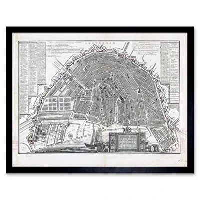 Artery8 Philips Old Map Of Amsterdam City Netherlands Art Print Framed Poster Wall Decor 12x16 inch