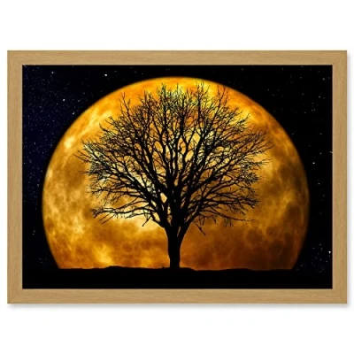 Artery8 Photo Composition Nature Silhouette Moon Star Tree Artwork Framed Wall Art Print A4