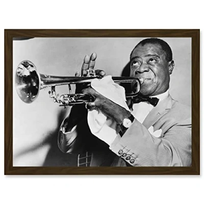 Artery8 Photo Music Jazz Louis Armstrong Playing Trumpet Artwork Framed Wall Art Print A4