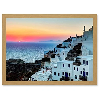 Artery8 Photo Scenic Sunset Oia Santorini Greece Buildings Artwork Framed Wall Art Print A4