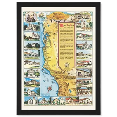 Artery8 Pictorial Map Putnam 1949 California Missions History Artwork Framed Wall Art Print A4