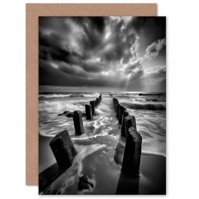 Artery8 Pier Ruins Dramatic Sea Beach Photo for Him or Her Man Woman Birthday Thinking of You Get Well Soon Blank Art Greeting Card