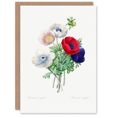 Artery8 Pierre Joseph Redouté Art Card Anemone Flowers Vintage Botanical