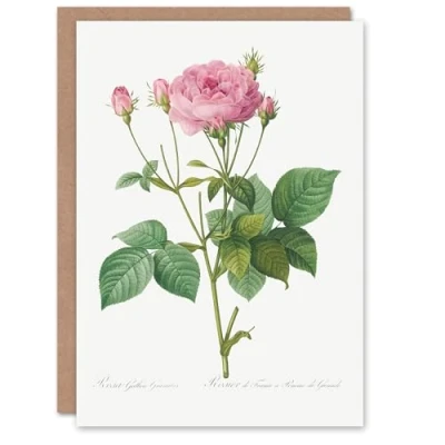 Artery8 Pierre Joseph Redouté Art Card Gallic Rose Vintage Flower Illustration