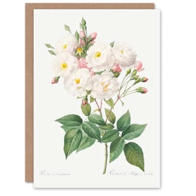 Artery8 Pierre Joseph Redouté Art Card Noisette Rose Vintage Floral Illustration