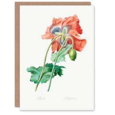 Artery8 Pierre Joseph Redouté Art Card Poppy Flower Vintage Botanical Illustration