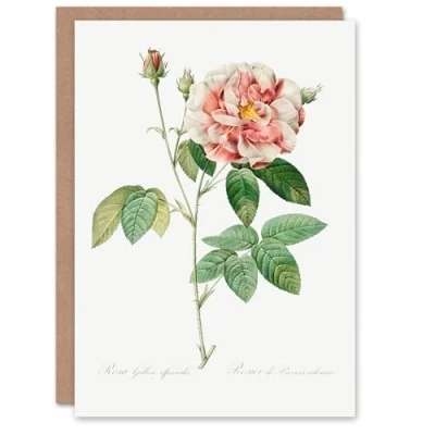 Artery8 Pierre Joseph Redouté Art Card Rosa Gallica Giant Rose Vintage Floral