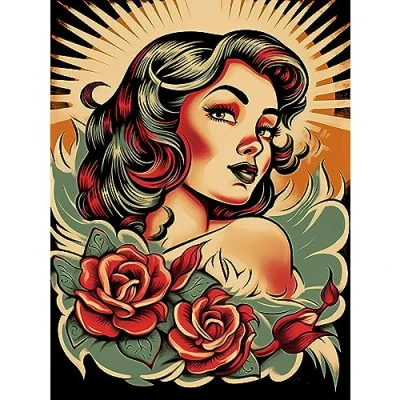 Artery8 Pin Up Girl Roses Retro Tattoo Ink Body Art Rockabilly Americana 50s Extra Large XL Wall Poster Print