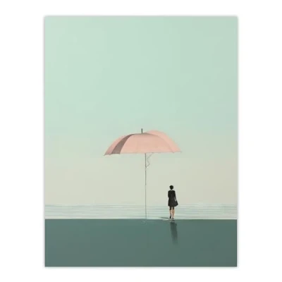 Artery8 Pink Beach Brolly By Amy Denver Minimalist Soft Pastel Seascape Minimalism Simple Modern Artwork Large Wall Art Poster Print Thick Paper 18X24 Inch