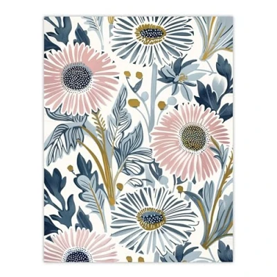 Artery8 Pink Blue Aster Wildflowers Bright Floral Design Living Room Large Wall Art Poster Print Thick Paper 18X24 Inch