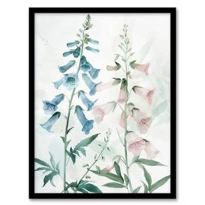Artery8 Pink Blue Foxglove Flowers Modern Watercolour Living Room Artwork Framed Wall Art Print A4