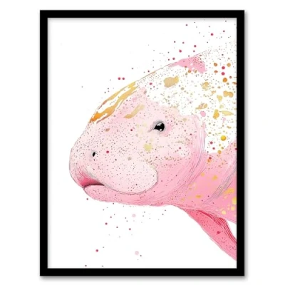 Artery8 Pink Manatee Gold Paint Splatter Animal Portrait Bathroom Toilet Artwork Framed Wall Art Print A4