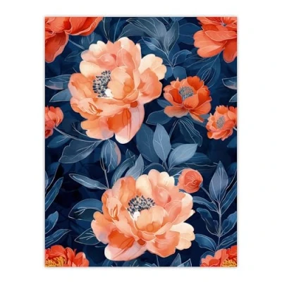 Artery8 Pink Peonies Flower Pattern Blue Floral Design For Living Room Extra Large XL Wall Art Poster Print