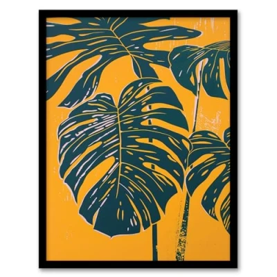 Artery8 Plant Lover Dark Green Yellow Monstera Leaves Living Room Artwork Framed Wall Art Print A4
