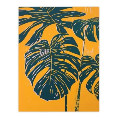 Artery8 Plant Lover Dark Green Yellow Monstera Leaves Living Room Large Wall Art Poster Print Thick Paper 18X24 Inch