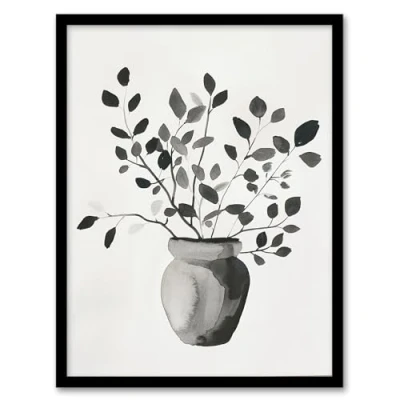 Artery8 Plant Lover Tree Pot Black White Watercolour Living Room Artwork Framed Wall Art Print A4