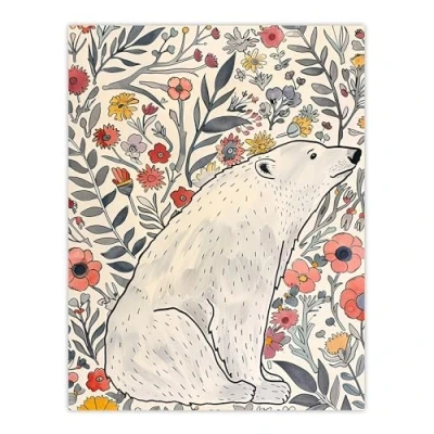 Artery8 Polar Bear Wildflower Pattern Soft Watercolour Living Room Large Wall Art Poster Print Thick Paper 18X24 Inch