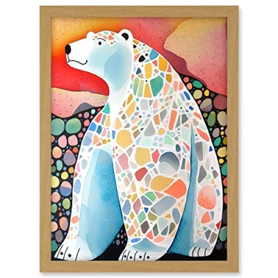 Artery8 Polar Bear With Mosaic Pattern Folk Art Artwork Framed A3 Wall Print
