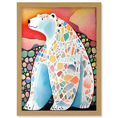 Artery8 Polar Bear With Mosaic Pattern Folk Art Artwork Framed Wall Print A4