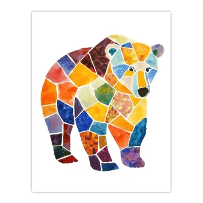 Artery8 Polar Bear With Mosaic Pattern Folk Art Painting Nursery Kids Bedroom Extra Large XL Wall Poster Print