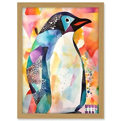 Artery8 Polygon Colour Penguin Folk Art Artwork Framed A3 Wall Print