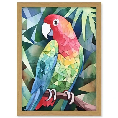 Artery8 Polygon Parrot Bird On Tree Branch Watercolour Painting Artwork Framed A3 Wall Art Print