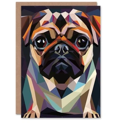 Artery8 Polygonal Pug Dog Lover Colourful Geometric Blank For Him Or Her Art Birthday Card