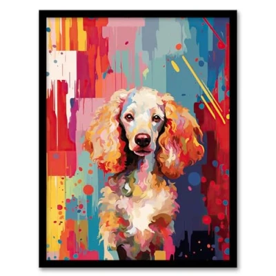 Artery8 Poodle Dog Lover Gift Pet Portrait Colourful Artwork Painting Framed Wall Art Print A4