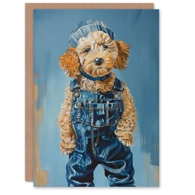 Artery8 Poodle in Dungarees Dog Lover Fun Pet Portrait Blank For Him Or Her Art Birthday Card