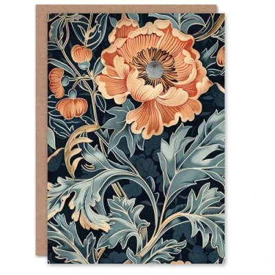Artery8 Poppies in Leaves Painting Soft Floral Greeting Birthday Card Him Her All Blank