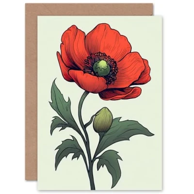 Artery8 Poppy Anemone Single Flower for Wife Her Mum Sister Daughter Mom Gran Nan Thinking of You Sympathy Blank Art Greeting Card