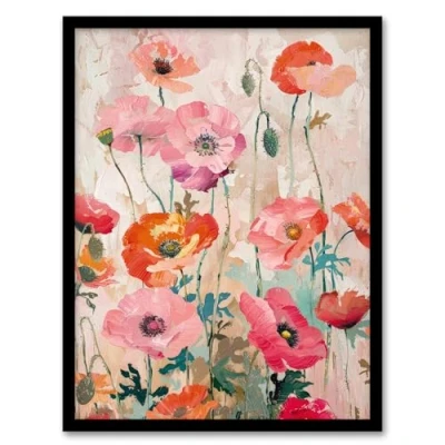 Artery8 Poppy Flowers Orange Pink Red Floral Oil Painting For Living Room Artwork Framed Wall Art Print A4