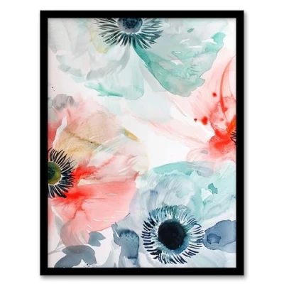 Artery8 Poppy Flowers Teal Blue Red Light Watercolour Living Room Artwork Framed Wall Art Print A4