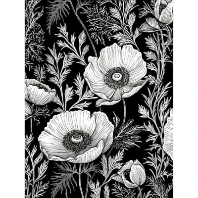 Artery8 Poppy Wild Flower Pattern Black and White Linocut Large Wall Art Poster Print Thick Paper 18X24 Inch