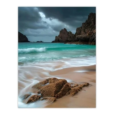 Artery8 Porthcurno Beach Cliffs Dramatic Landscape Living Room Extra Large XL Wall Art Poster Print