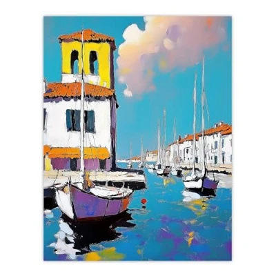 Artery8 Portofino Italy Harbour Sailboats Marina Painting Bathroom Toilet Extra Large XL Wall Art Poster Print