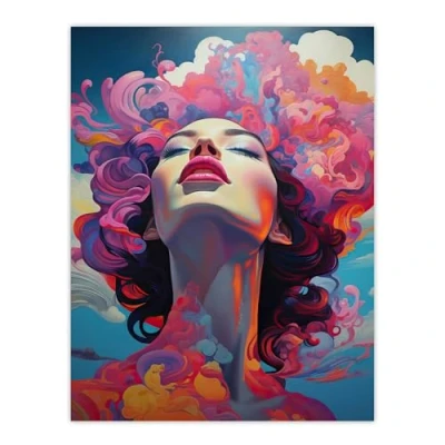 Artery8 Portrait Of Sun Worship Semi Abstract Woman Purple Clouds Hair Large Wall Art Poster Print Thick Paper 18X24 Inch