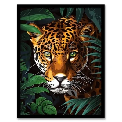 Artery8 Powerful Jaguar Lurking In Jungle Plants Painting Living Room Artwork Framed Wall Art Print A4