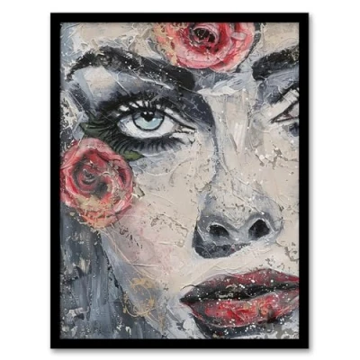 Artery8 Pretty Like a Rose Flower Woman Portrait Painting Living Room Artwork Framed Wall Art Print A4