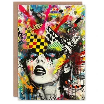 Artery8 Psychedelic Glam Punk Conceptual Art Portrait Blank For Him Or Her Birthday Card