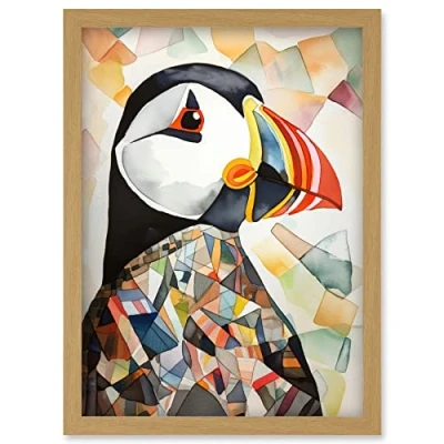 Artery8 Puffin Bird Abstract Portrait Folk Art Artwork Framed Wall Print A4