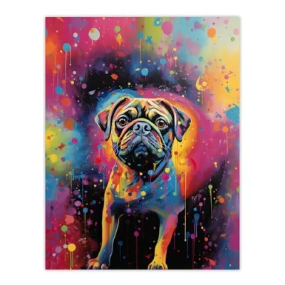 Artery8 Pug Dog Lover Gift Pet Portrait Colourful Neon Artwork Painting Large Wall Art Poster Print Thick Paper 18X24 Inch