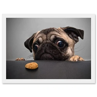 Artery8 Pug Dog Treat Cookie Eyes A4 Artwork Framed Wall Art Print