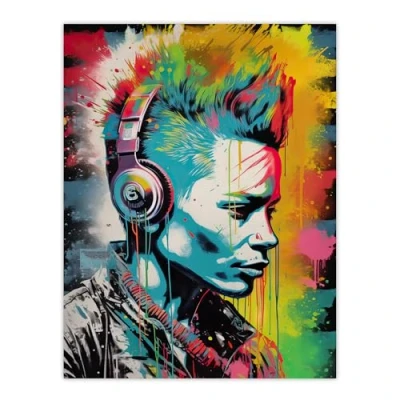 Artery8 Punk Music Vibrant Artwork Young Man With Headphones Portrait Extra Large XL Wall Art Poster Print