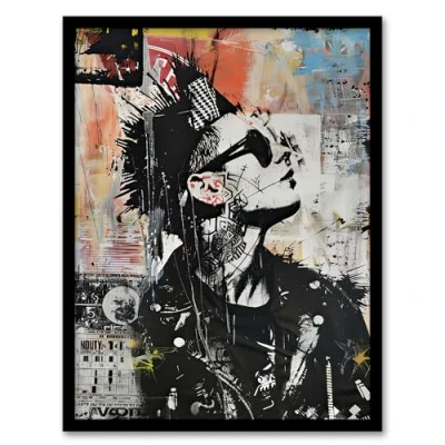 Artery8 Punk Portrait Street Art Mohawk Bold Anarchy Living Room Artwork Framed Wall Print A4