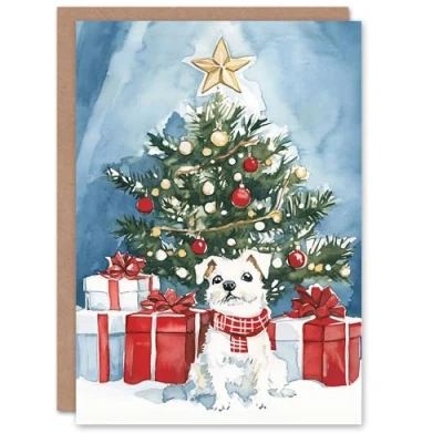 Artery8 Puppy Presents Decorated Tree Dog Lover Blank For Him Or Her Art Xmas Festive Christmas Card