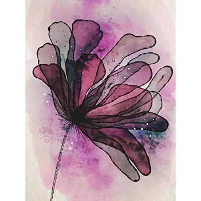 Artery8 Purple Grunge Flower Watercolour Painting Large Wall Art Poster Print Thick Paper 18X24 Inch