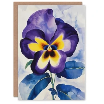Artery8 Purple Pansy Watercolour Painting Soft Floral Greeting Birthday Card Him Her All Blank