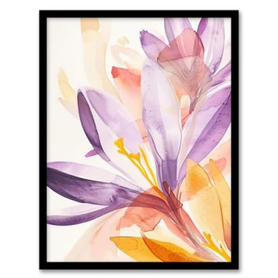 Artery8 Purple Yellow Crocus Flowers Watercolour Light Living Room Artwork Framed Wall Art Print A4