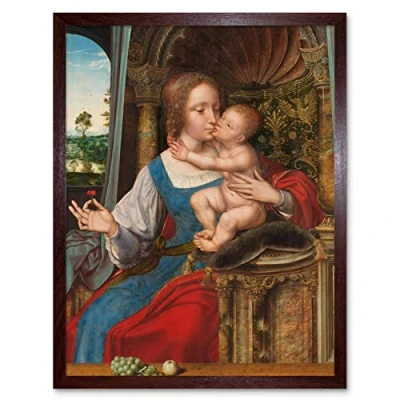 Artery8 Quinten Massijs Virgin And Child Painting Art Print Framed Poster Wall Decor 12x16 inch